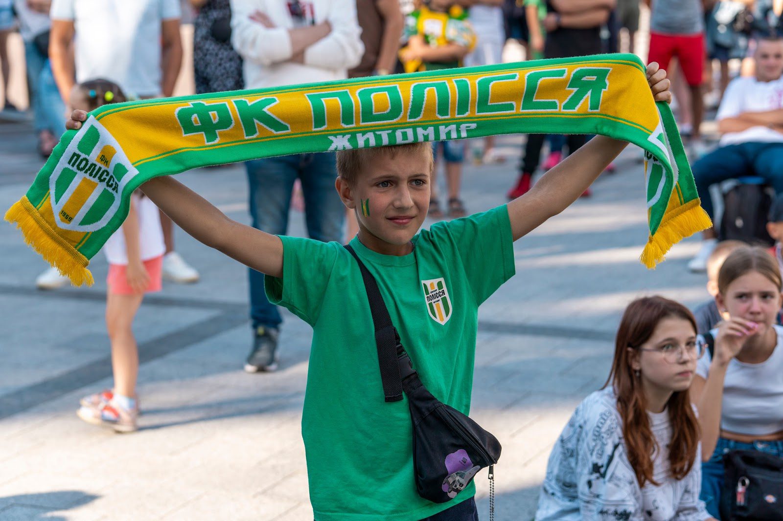 Звичайно не було б жодних здобутків у команди, без величезної групи підтримки. А вона у них надзвичайно потужна. Коли у гравців матч, то здається, що усе місто переодягається у зелено-жовті кольори. Чоловіки одягають шарфи з логотипами у шалену спеку, жінки постять фото з фотозони команди “Полісся” в інстаграм, а діти розмальовують щічки футбольною символікою. Навіть памʼятник Корольова, що знаходиться в центрі міста, переодягається у футболку клубу. Зовсім нещодавно для фанатів встановили проєктор, на одній із центральних площ, для перегляду матчу – це було справжнє видовище. Здається, що у дні коли житомирські гравці беруть участь у матчах, все місто перетворюється на велику родину, що зібралась на сімейне свято. І дійсно стає трошки більше світла і радості, особливо, коли все завершується перемогою.