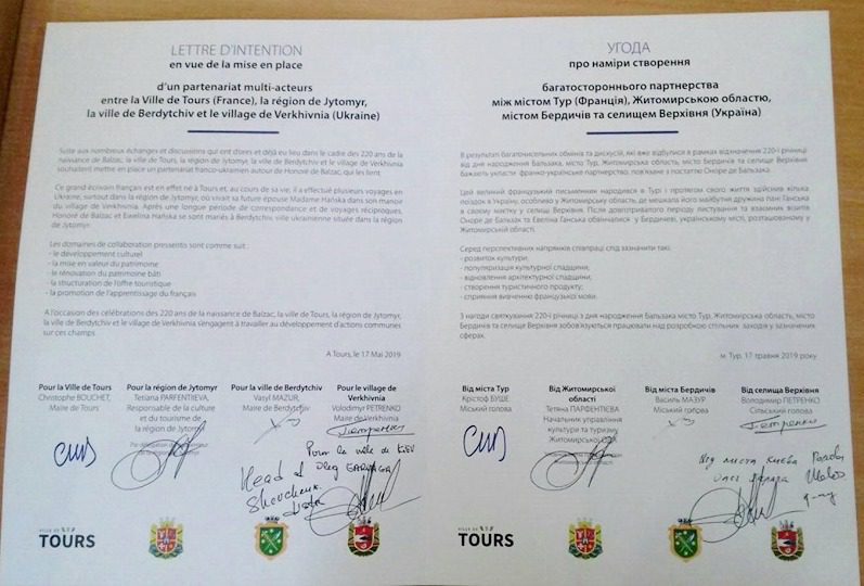 Житомирська область налагодила співпрацю у культурній та туристичній сферах з французьким містом Тур. У рамках відзначення 220-ї річниці з дня народження Оноре де Бальзака був підписаний відповідний меморандум. Зазначимо, що відомий французький письменник народився саме у Турі. Далі розкаже “Я житомирянин”
